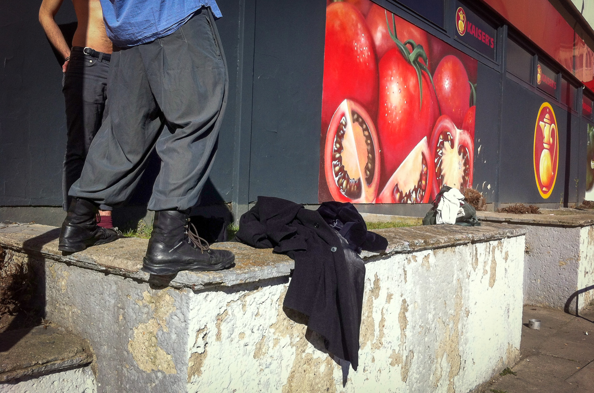 Vor der Wand eines Supermarktes entstand die erste Fotoserie für das Buch “Moritz & Ivahn”. Danach haben wir Joseph Wolfgang Ohlert noch ein paar Fragen gestellt.